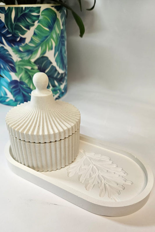 Leaf Embossed Tray and Striped Vessel set